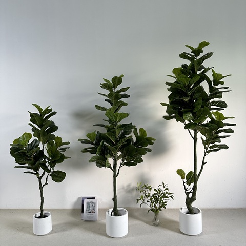 Оптовая продажа, Искусственный лист скрипки, фиговое дерево, большое искусственное зеленое растение для украшения сада в офисном отеле